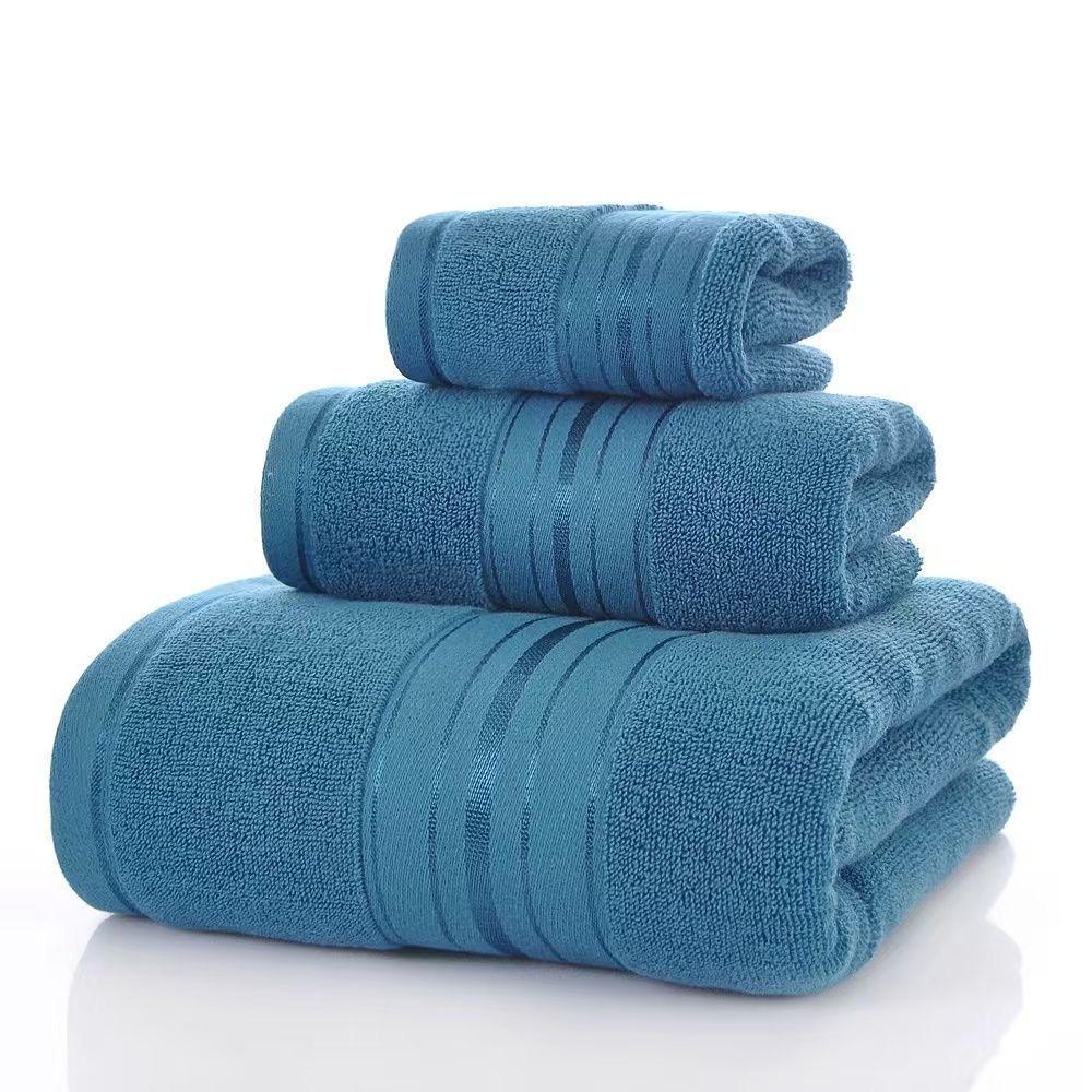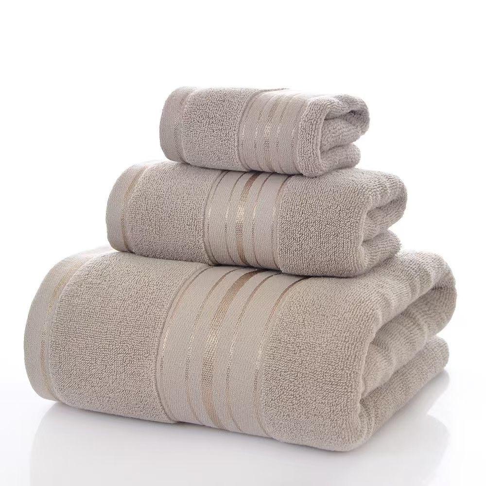 Seti ya taulo 3 (Bath Towel, Hand Towel & Face Towel) za pamba laini za ubora wa juu, zinayonya maji haraka, laini kwa ngozi na zinazodumu kwa muda mrefu. Zinatoa muonekano wa kifahari kwa matumizi ya nyumbani, hotel, spa au lodge.